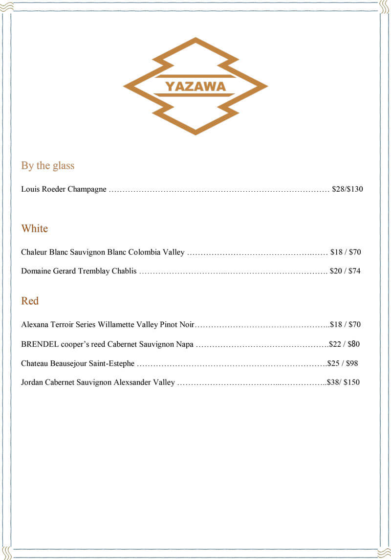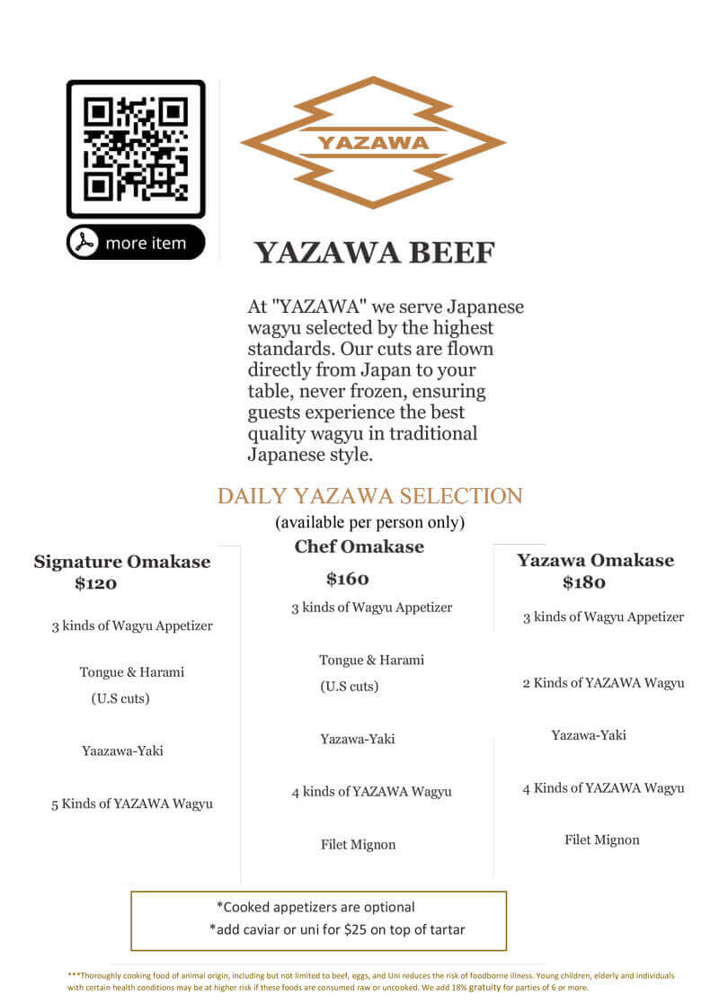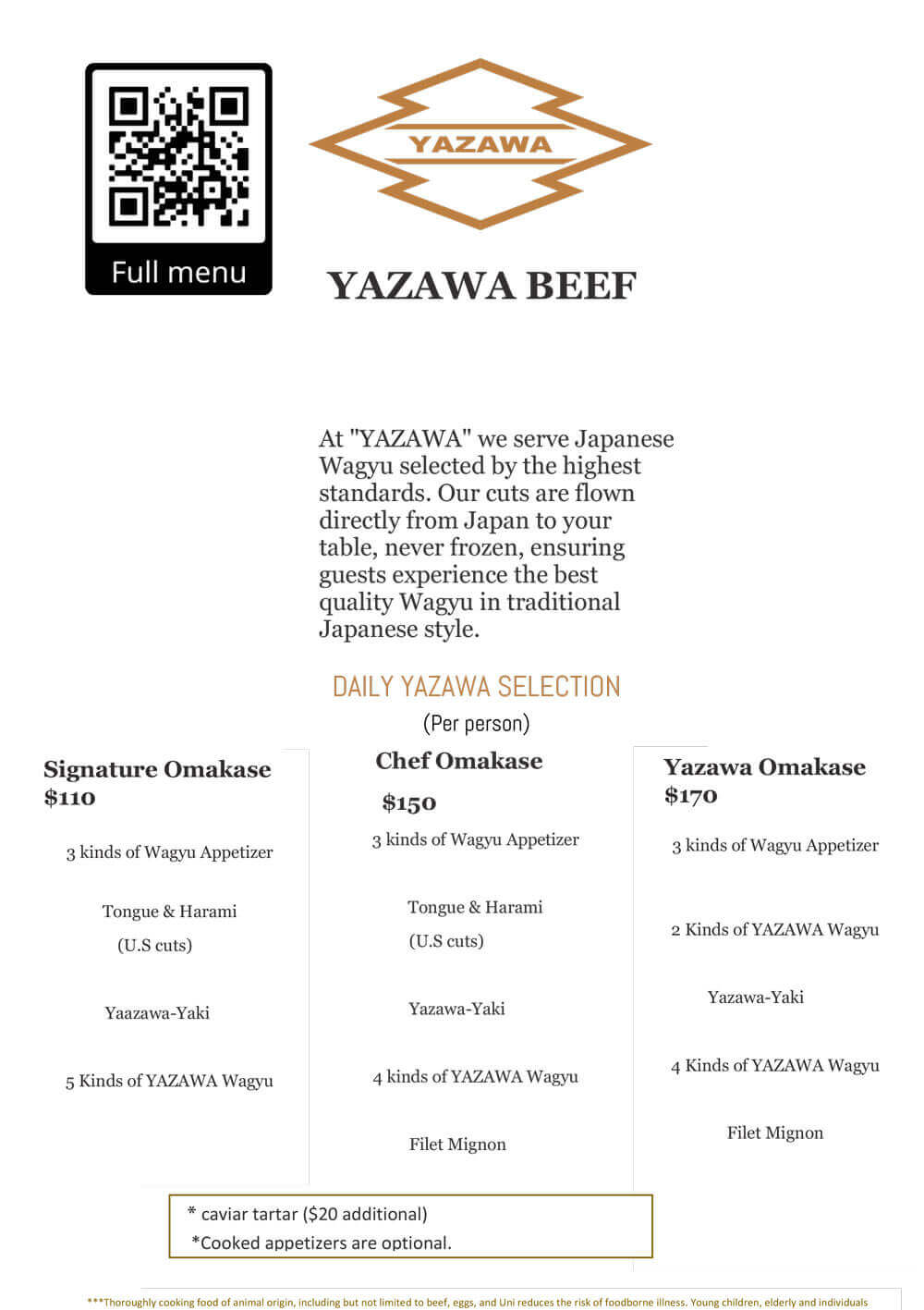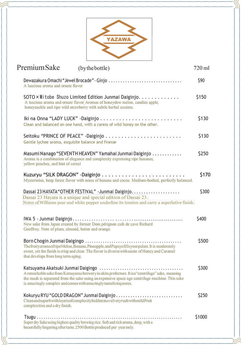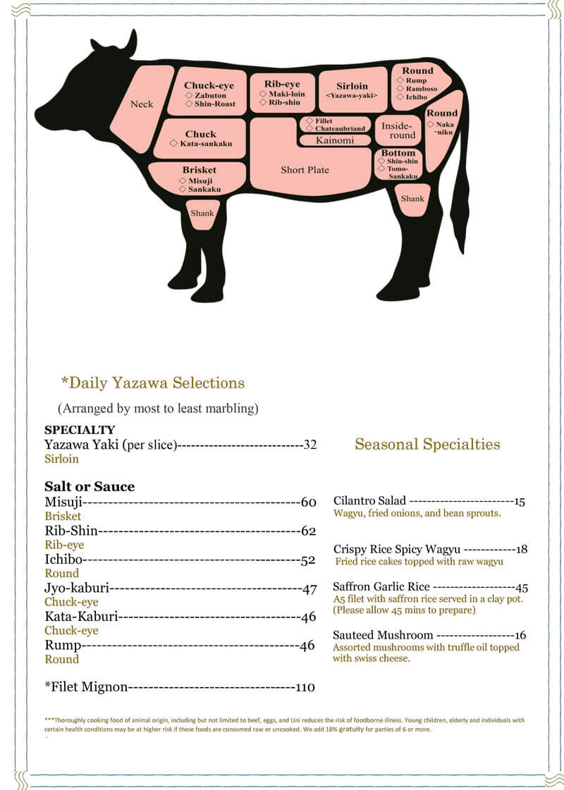 Menu Pick up, Delivery and Dine In